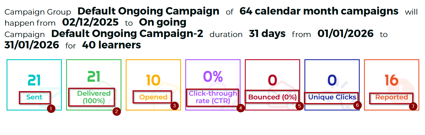 - Reported: Total number of emails reported by learners for that particular Monthly campaign.