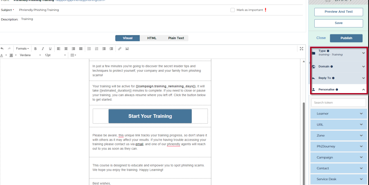 As a Phriendly Phishing Admin you have the ability to modify the Training Email Templates. Even if Learner Hub has been enabled for your zone, you have the ability to modify the applicable Email Templates.